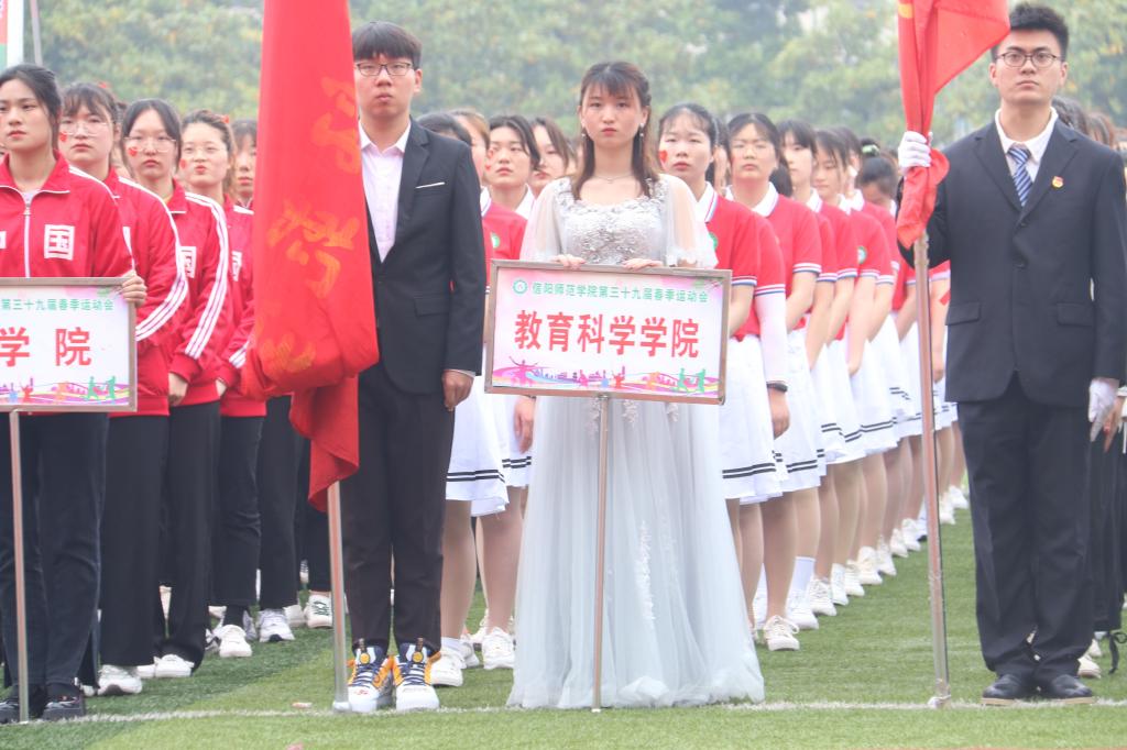 22日上午,運(yùn)動(dòng)會(huì)正式拉開帷幕,我院方隊(duì)高舉院旗,身著統(tǒng)一的服裝,伴隨著分列式進(jìn)行曲,意氣風(fēng)發(fā)地走向主席臺(tái),整齊劃一的步伐和鏗鏘嘹亮的口號(hào)充分展現(xiàn)教科學(xué)子朝氣蓬勃、昂揚(yáng)向上的精神風(fēng)貌。校領(lǐng)導(dǎo)致辭,運(yùn)動(dòng)員裁判員代表宣誓之后,第三十九屆運(yùn)動(dòng)會(huì)在掌聲歡呼中宣布正式開始。
