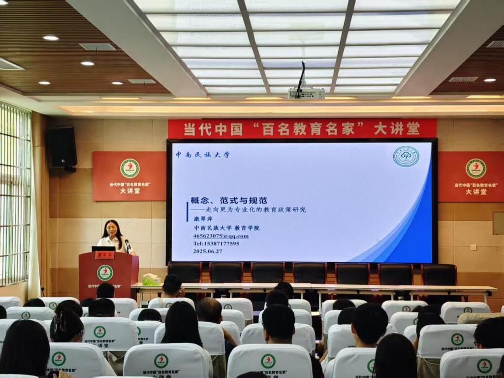時(shí)間:2025-06-28 12:39:52 來源: 作者: 閱讀: 次2025年6月27日下午,中南民族大學(xué)學(xué)術(shù)委員會(huì)主任康翠萍教授,應(yīng)邀做客信陽師范大學(xué)教育科學(xué)學(xué)院并作題為《概念、范式與規(guī)范—走向更為專業(yè)化的教育政策研究》學(xué)術(shù)專題報(bào)告。教育碩士導(dǎo)師、研究生及基礎(chǔ)教育一線教師代表參加了報(bào)告會(huì)。