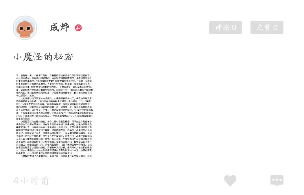 本次大賽面向教育科學(xué)學(xué)院全體學(xué)生,采用線上方式舉行。參賽者需要發(fā)揮自己的想象力編寫一篇600字以上的兒童故事作為參賽作品。故事內(nèi)容要符合兒童成長規(guī)律,對兒童健康成長具有積極的引導(dǎo)作用,同時(shí)保證故事結(jié)構(gòu)的完整和邏輯的嚴(yán)謹(jǐn)。活動(dòng)負(fù)責(zé)人從故事的完成度、感染力、文學(xué)美感和教育意義等多方面對所有作品進(jìn)行綜合評比,期間牛潔楠對活動(dòng)進(jìn)行督導(dǎo),確保比賽的順利進(jìn)行。一篇篇充滿奇思妙想的故事,向孩子們講述著“抗疫英雄”、“醫(yī)患關(guān)系”、“友誼長存”,讓他們感受到人間的溫情與友誼的美好。經(jīng)過評委們認(rèn)真的評比,最終李陽陽、董卜霖、陳慧婷榮獲比賽一等獎(jiǎng),曹巾淼、成燁、溫佳妮、喬夢夢、武姿獲得比賽二等獎(jiǎng)。