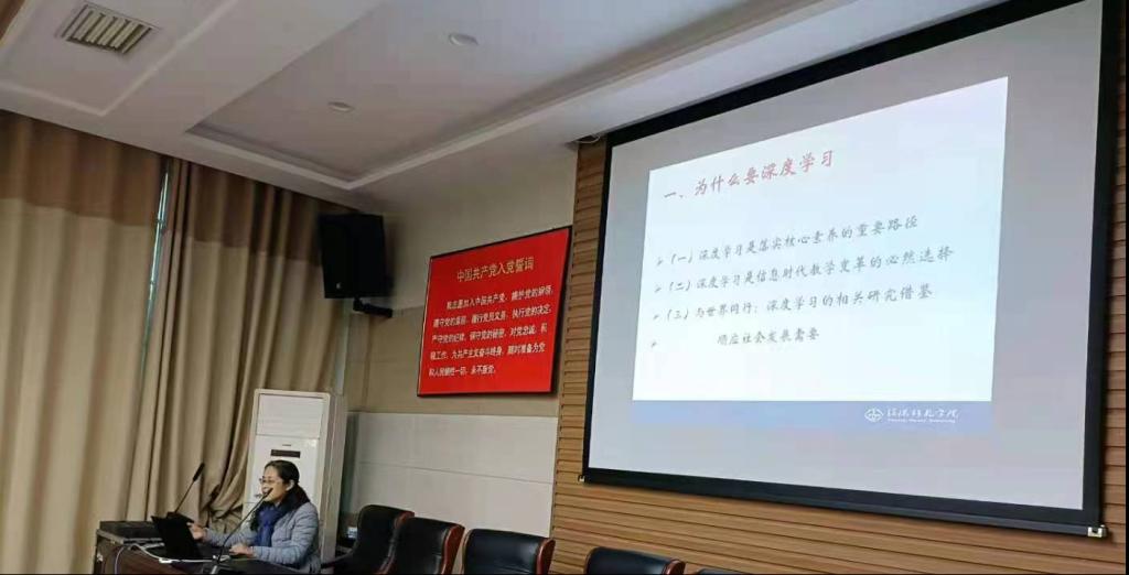 邢思珍教師從“為什么要進(jìn)行深度學(xué)習(xí)”“深度教學(xué)是什么”“怎樣進(jìn)行深度學(xué)習(xí)”三個(gè)方面展開報(bào)告,并結(jié)合教學(xué)實(shí)際,分析深度教學(xué)的實(shí)現(xiàn)。之后,教師們就當(dāng)下大學(xué)生學(xué)習(xí)現(xiàn)狀及其如何在課堂中引導(dǎo)學(xué)生深度學(xué)習(xí)進(jìn)行了熱烈討論。