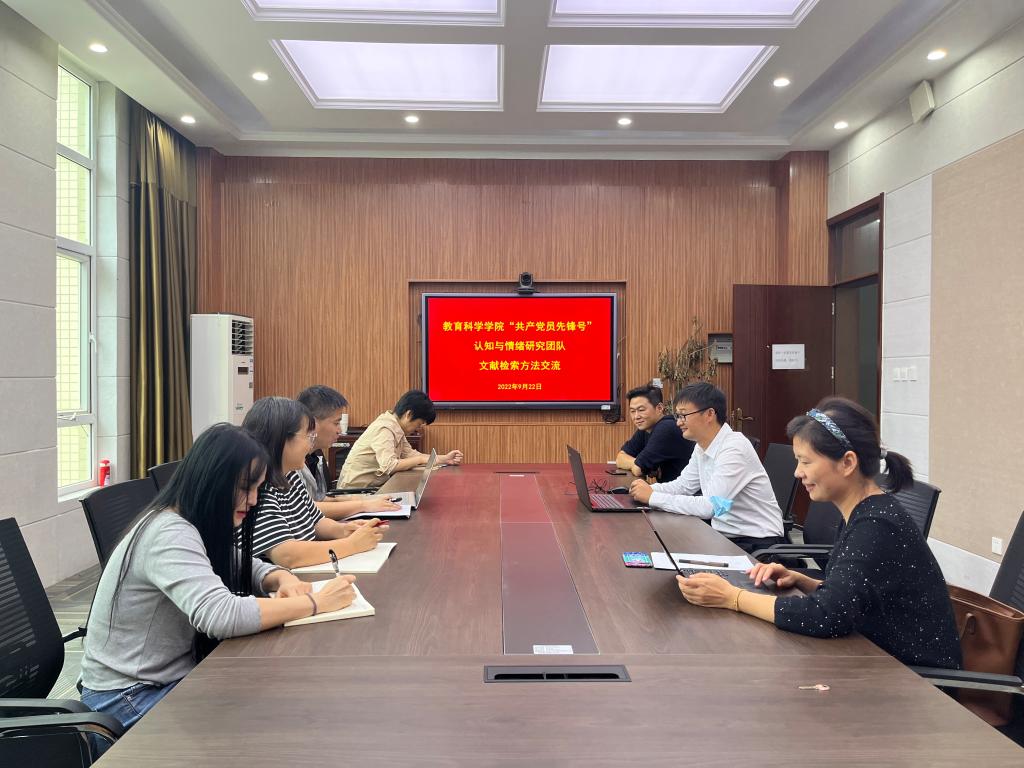 時間:2022-09-22 15:40:06 來源: 作者: 閱讀: 次9月22日下午,教育科學(xué)學(xué)院教工第二黨支部“共產(chǎn)黨員先鋒號”認知與情緒研究團隊于教科樓303會議室開展交流活動,團隊成員劉湍麗、邢敏、燕小輝、楊勇、楊軍義、趙昕、董國珍參加會議,會議由團隊帶頭人劉湍麗主持。會上圍繞學(xué)術(shù)論文的文獻檢索方法進行真誠分享交流,通過學(xué)術(shù)研討促進老師們科研方法的資源共享。