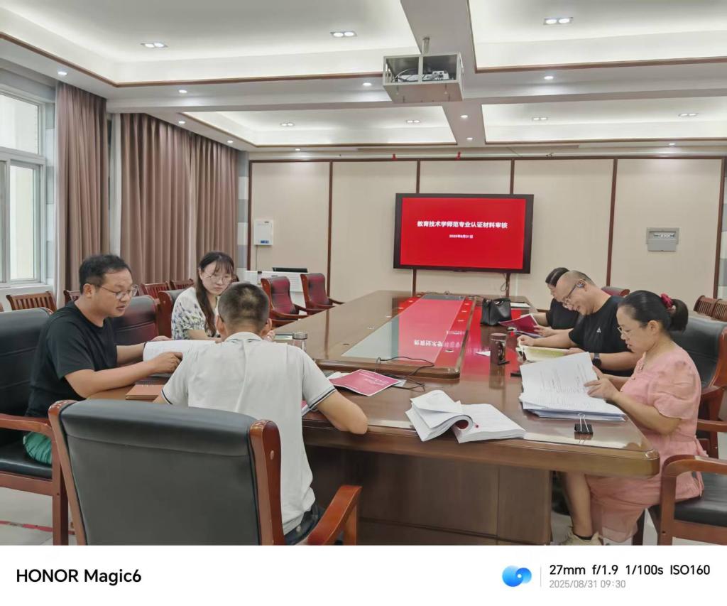 2025 年 8 月 31 日,教育技術(shù)學(xué)系為迎接即將到來的師范專業(yè)認(rèn)證,精心組織開展了專業(yè)認(rèn)證材料審核工作。系主任崔宇路、教學(xué)秘書劉萱、教師技能訓(xùn)練中心主任劉琦,以及武濱、張育桂、張立春、宋曄老師參加審核工作。